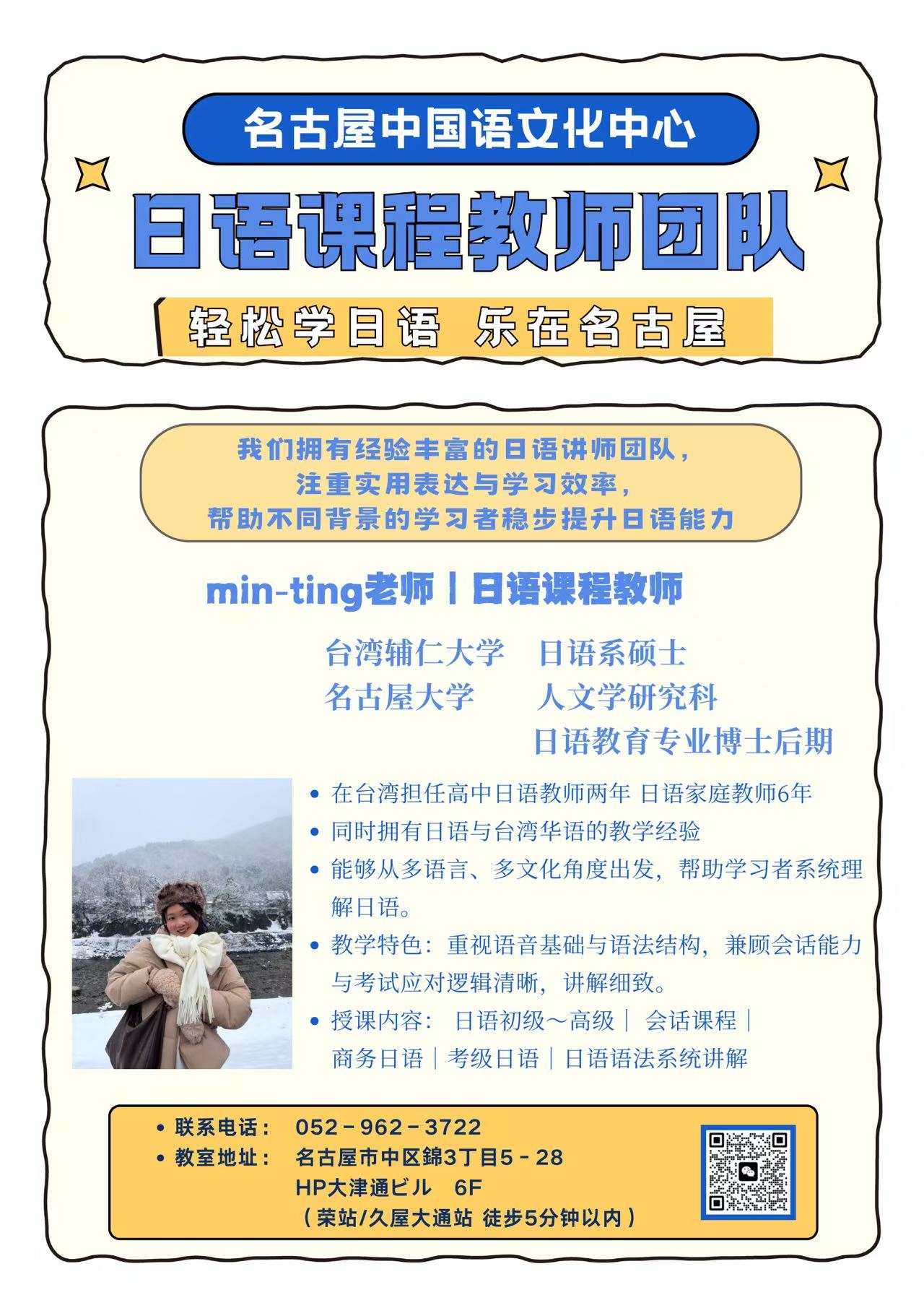 中国の大手教育機関で日本語講師として活躍し、日本の専門学校では中国語講師としても経験を積むなど、幅広い教育経験を持っています。 現在は日本語学校で、日本語教育にも携わっています。