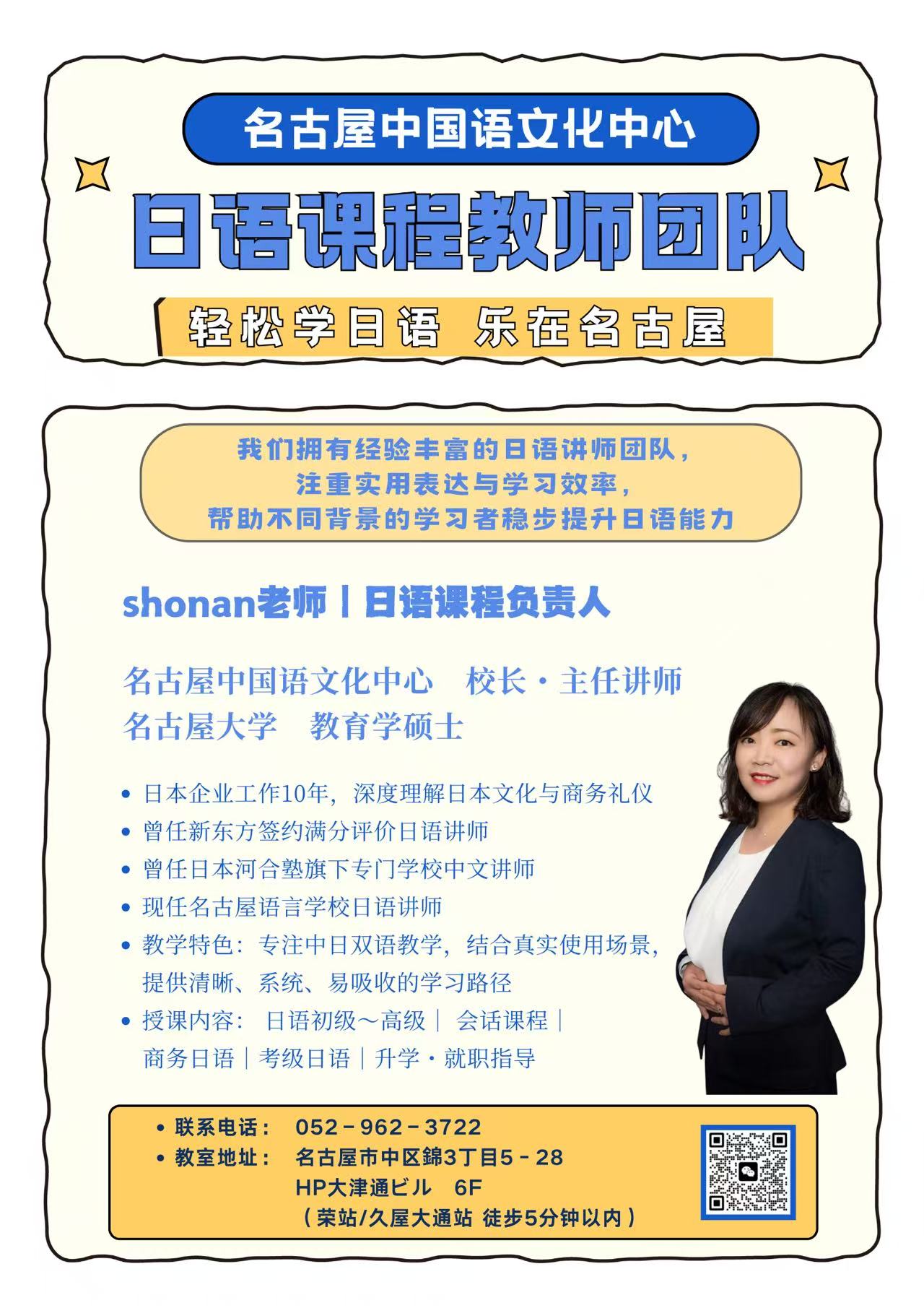 JLPT N1取得者で、420時間日本語教師養成講座を修了。 名古屋大学教育学修士。 日本企業で10年以上勤務し、そこで培った日本文化やビジネスマナーを教育現場に活かしています。